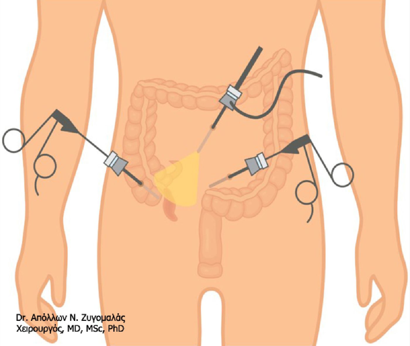 Η λαπαροσκοπική τεχνική επιτρέπει στο χειρουργό να πραγματοποιήσει όλη την επέμβαση μέσα από 4-5 μικρές τομές περίπου ενός εκατοστού. Το χειρουργείο γίνεται με εξειδικευμένα λαπαροσκοπικά χειρουργικά εργαλεία και με τη βοήθεια λαπαροσκοπίου, μιας ειδικής δηλαδή βιντεοκάμερας που επιτρέπει στον χειρουργό να βλέπει τα εσωτερικά όργανα του ασθενούς σε μεγέθυνση στην οθόνη μιας τηλεόρασης. Στο τέλος της επέμβασης μία από τις τομές διευρύνεται κατά 4-5 εκατοστά προκειμένου να απομακρυνθεί μέσα από την κοιλιά το τμήμα του εντέρου που πάσχει. Η λαπαροσκοπική τεχνική προσφέρει αρκετά πλεονεκτήματα έναντι της κλασσικής «ανοιχτής» χειρουργικής. Υπάρχουν βέβαια ορισμένες περιπτώσεις στις οποίες δεν είναι δυνατό να εφαρμοστεί λαπαροσκοπική κολεκτομή ή η λαπαροσκοπική επέμβαση πρέπει να μετατραπεί σε κλασική ανοιχτή. Παράγοντες που αυξάνουν την πιθανότητα για πραγματοποίηση ανοιχτής επέμβασης είναι η σοβαρή παχυσαρκία, ιστορικό προηγούμενων επεμβάσεων στην κοιλιά, σοβαρή αιμορραγία κατά τη διάρκεια της επέμβασης ή άλλα τεχνικά προβλήματα.